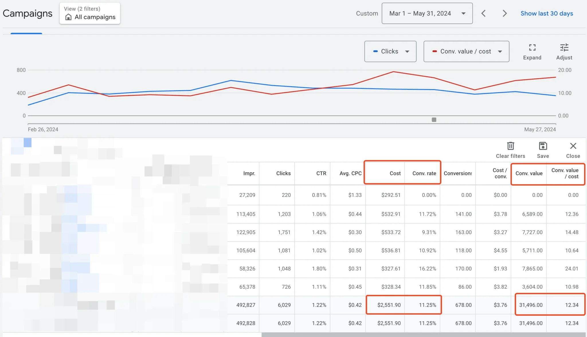With a total ad spend of $2,551.90, the campaigns generated 492,827 impressions and 6,029 clicks, resulting in a click-through rate (CTR) of 1.22%. The cost per click (CPC) averaged $0.42, highlighting cost-effective traffic acquisition.